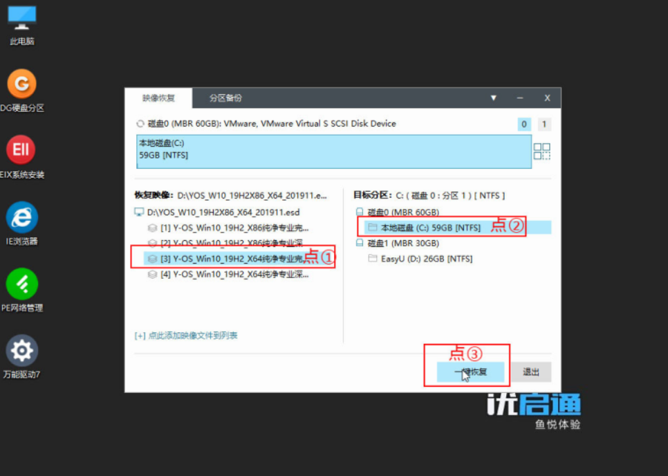 选择要安装的系统,和电脑的C盘,一键恢复,即可