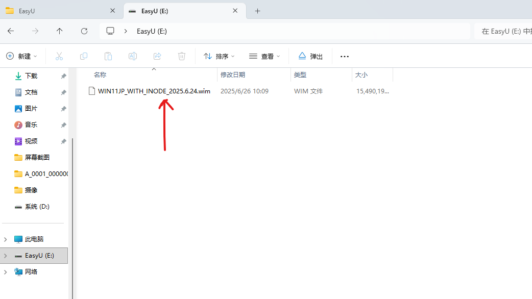 将想要安装的系统镜像(.wim .iso)放在U盘的任意路径